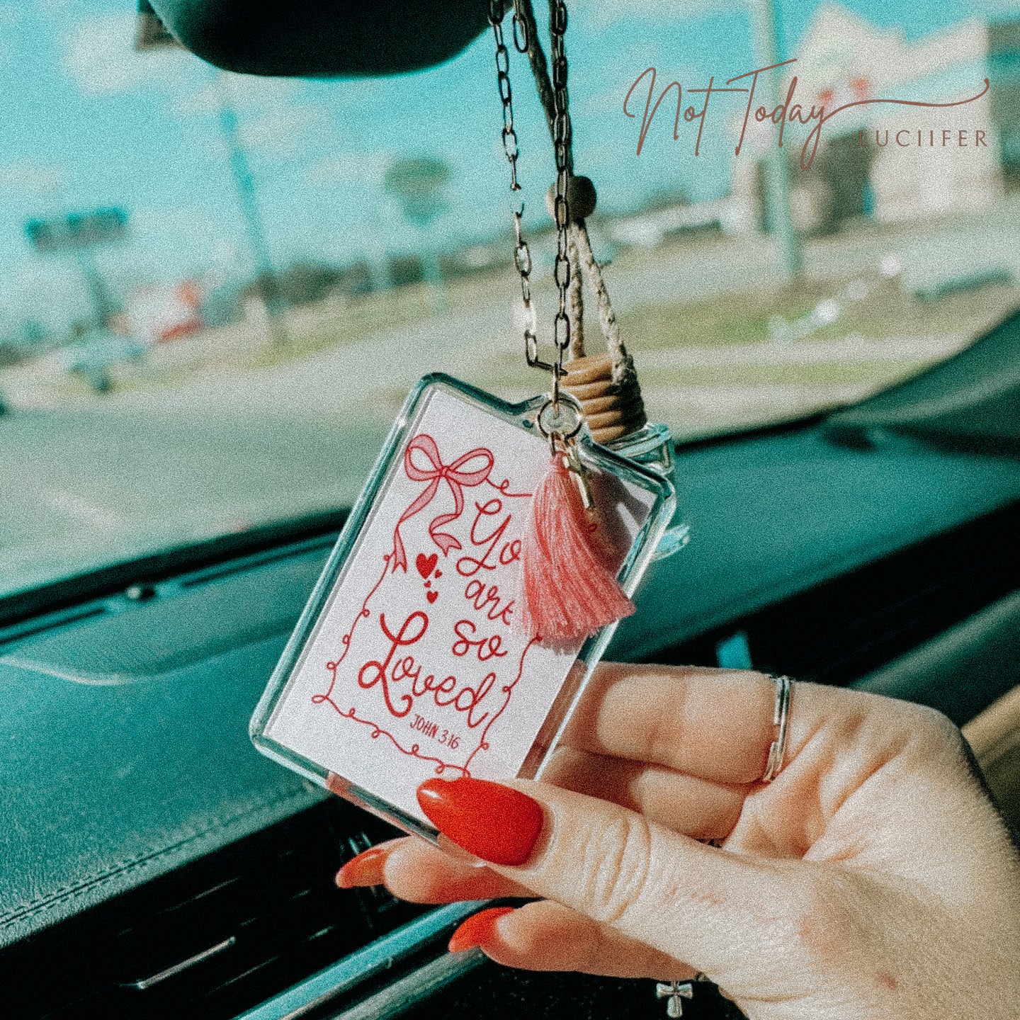Rev up your car with a touch of faith and love with our "You are so loved" Car Charm! This charming accessory features a Bible verse that will uplift your spirits and bring a smile to your face every time you see it hanging in your vehicle.