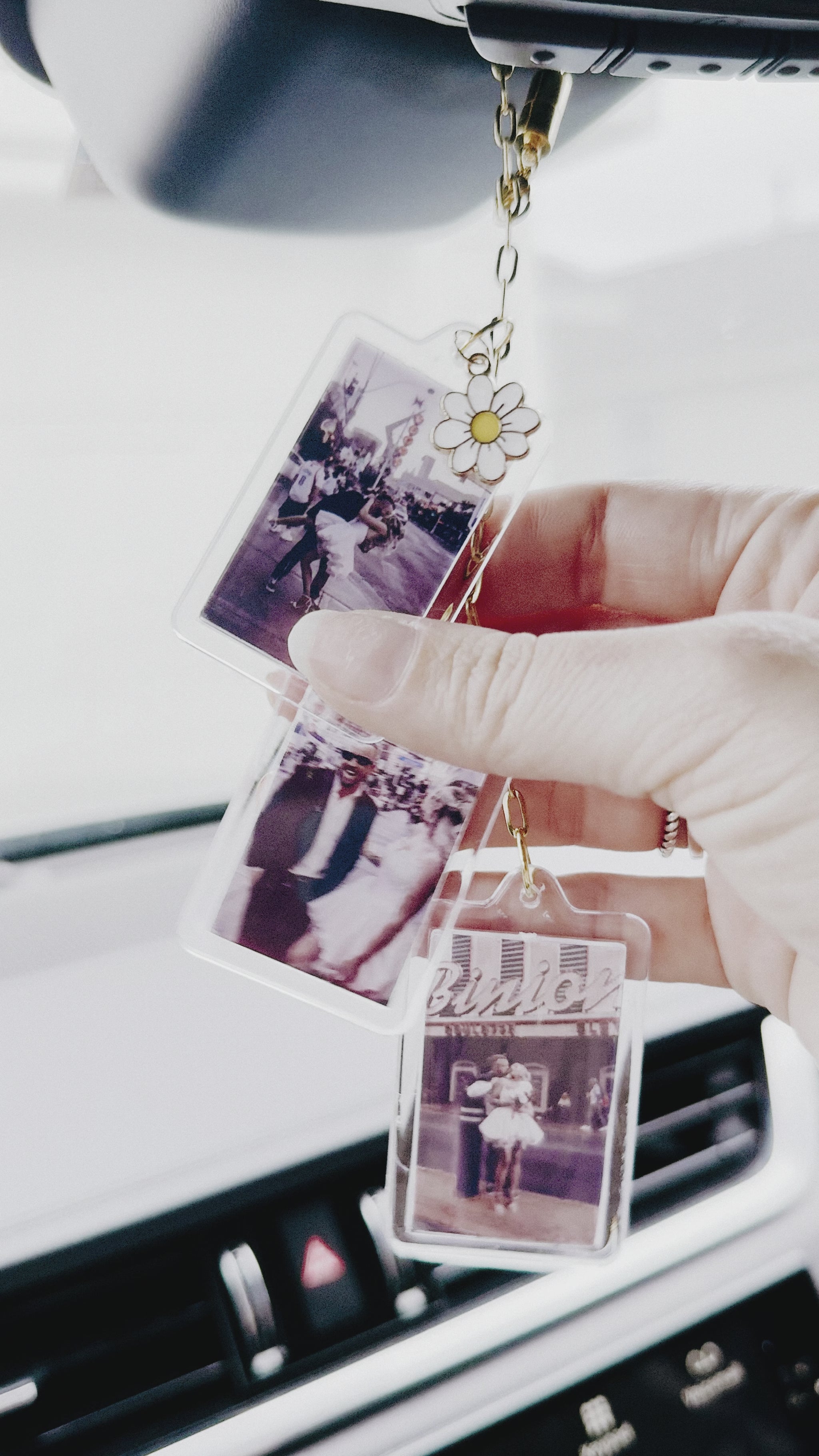 Add some charm to your car with our Car Charm Hanger! This adorable accessory easily attaches to your rearview mirror and is perfect for hanging your favorite charms or trinkets. Made of durable material, this hanger is not only stylish but also functional. Easily customize your car with multiple photos attached to showcase your personality on the go!