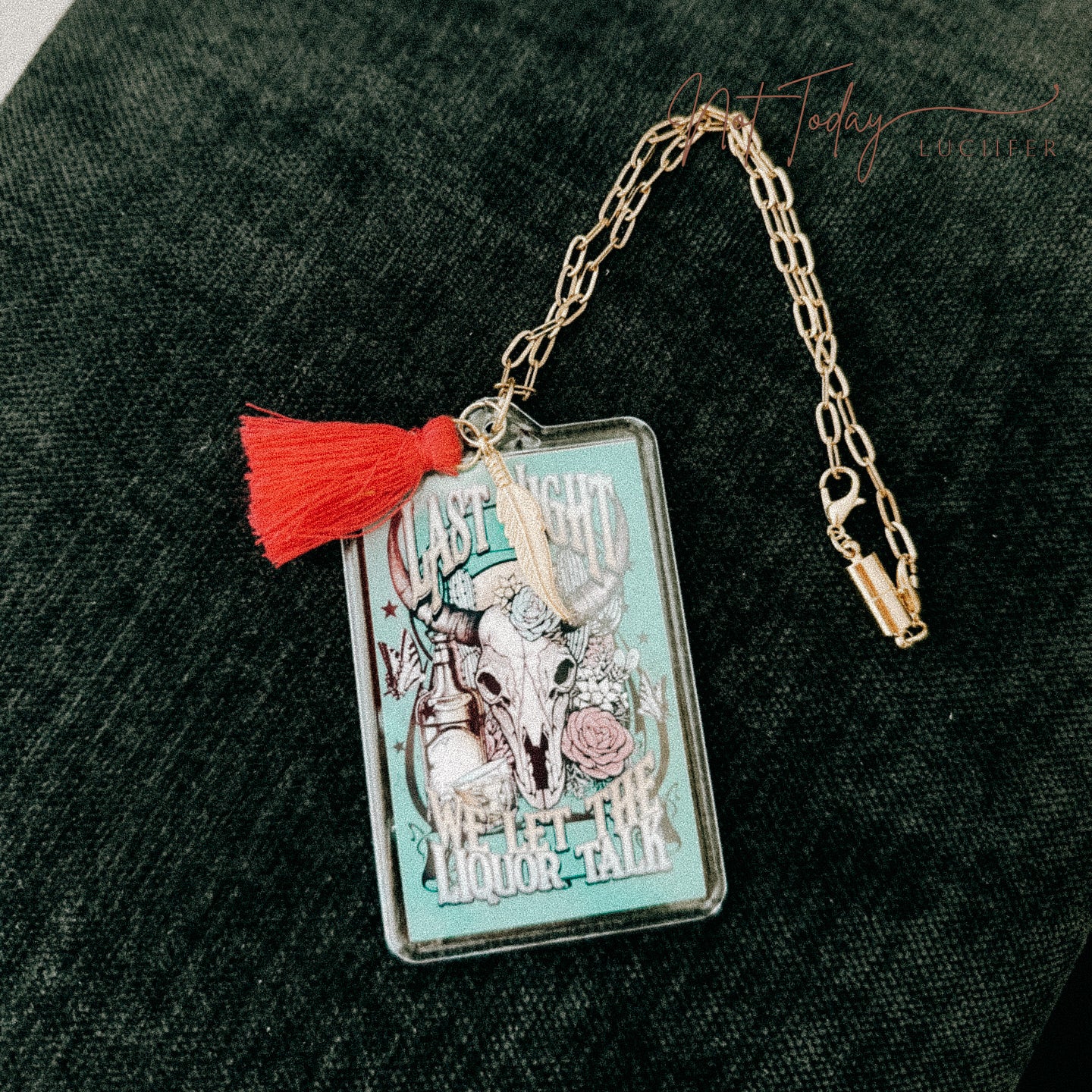 Elevate your car's style with the Last Night We Let the Liquor Talk Car Charm, the ultimate hanging car accessory for those who enjoy a good time on the go. Whether you're cruising around town or embarking on a road trip, this charm will remind you of all the fun memories made when the liquor was doing the talking.