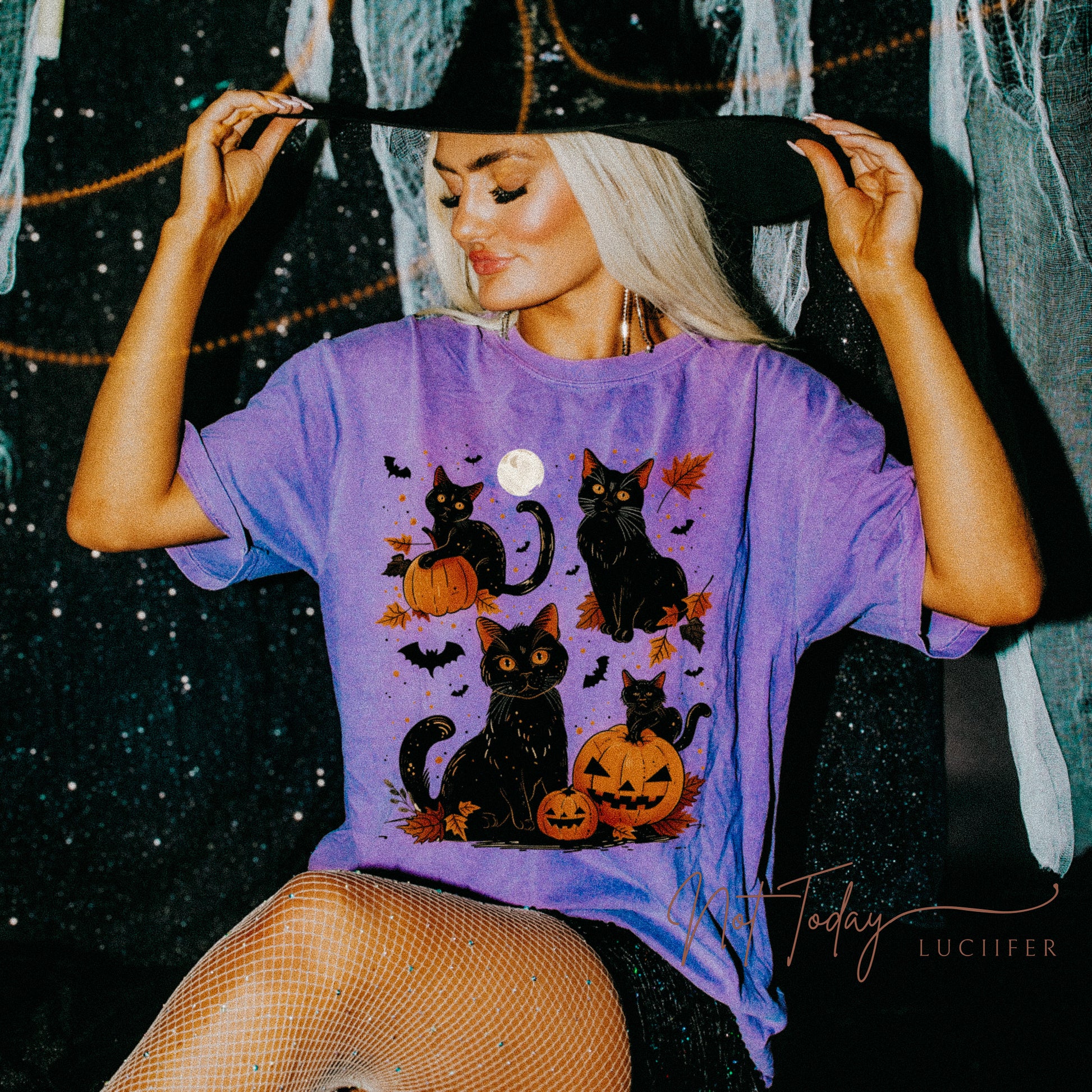 Get into the Halloween spirit with our adorable black cat tee! Made from 100% cotton, this t-shirt is perfect for the spooky season. Whether you're attending a costume party or just love cats, this shirt is a must-have addition to your wardrobe.