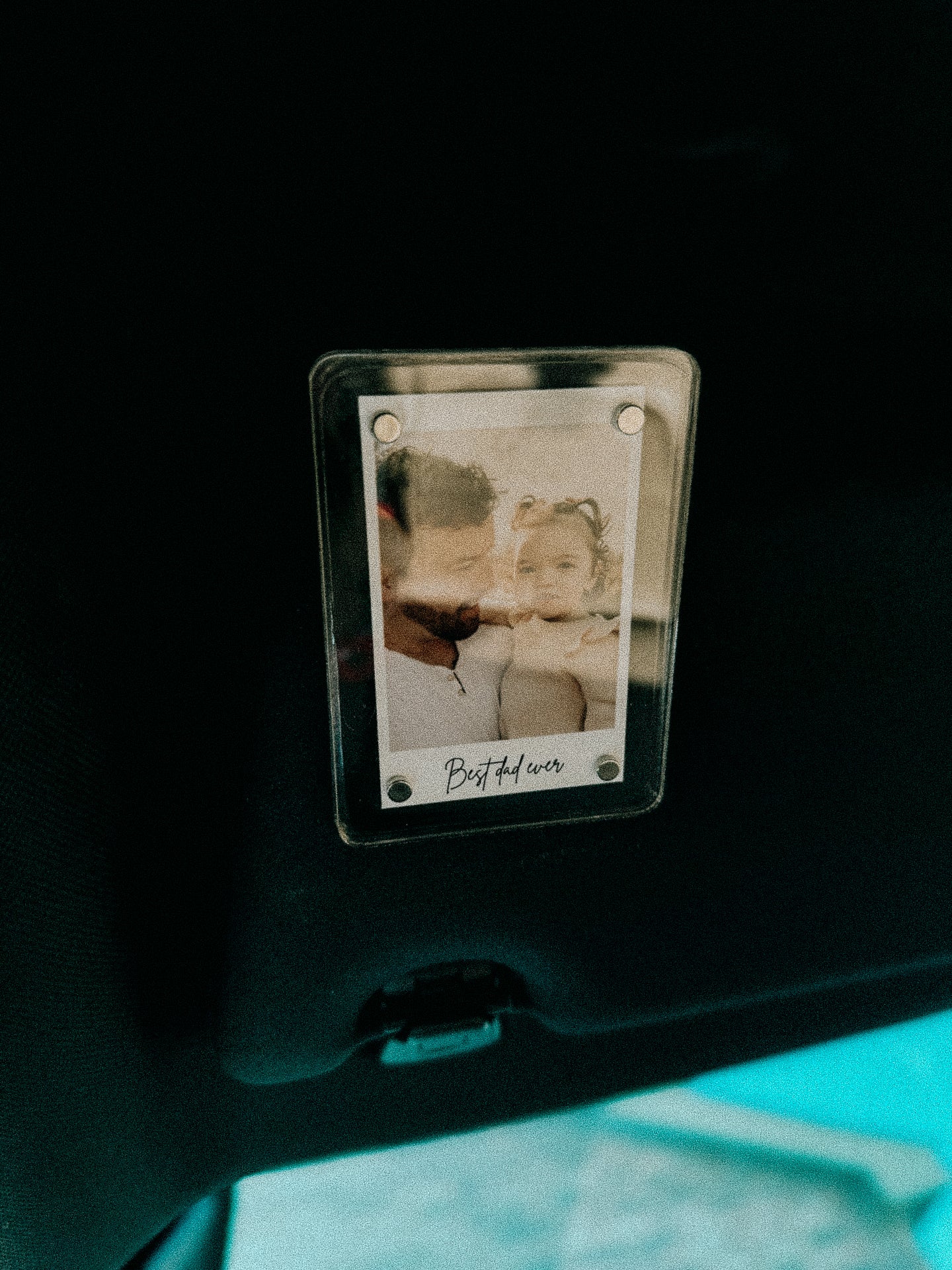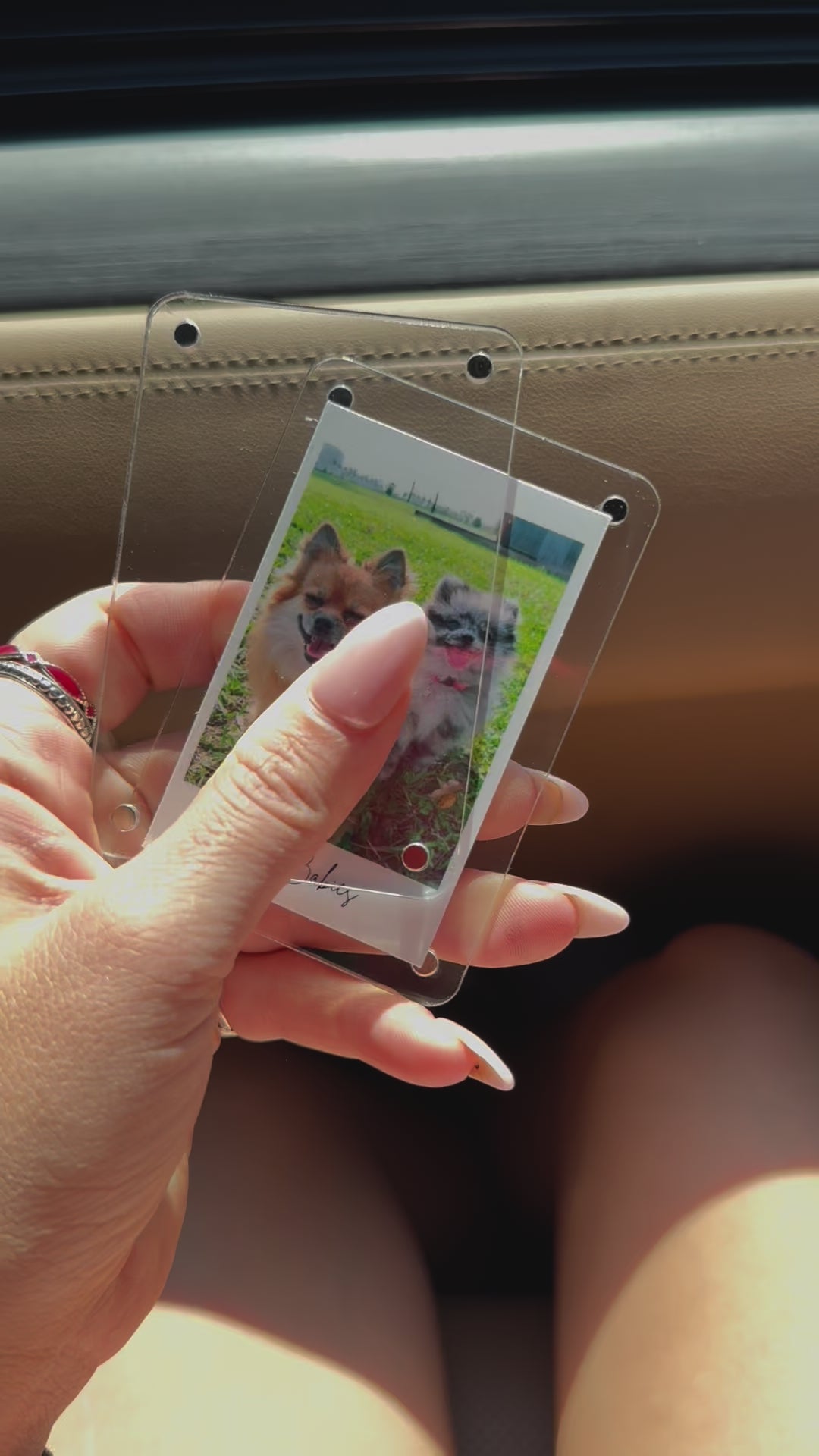 Introducing the magnetic polaroid Sunvisor clip with interchangeable photos! Say goodbye to boring visors and hello to endless customization options. This nifty gadget allows you to switch out photos effortlessly, adding a personal touch to your daily drives. Whether you want to display your favorite memories or switch it up with seasonal snapshots, this clip has got you covered. Embrace the fun and creative side of car accessories with this innovative and charming little addition to your vehicle. Turn your ordinary visor into a vibrant showcase of your personality in just a snap!