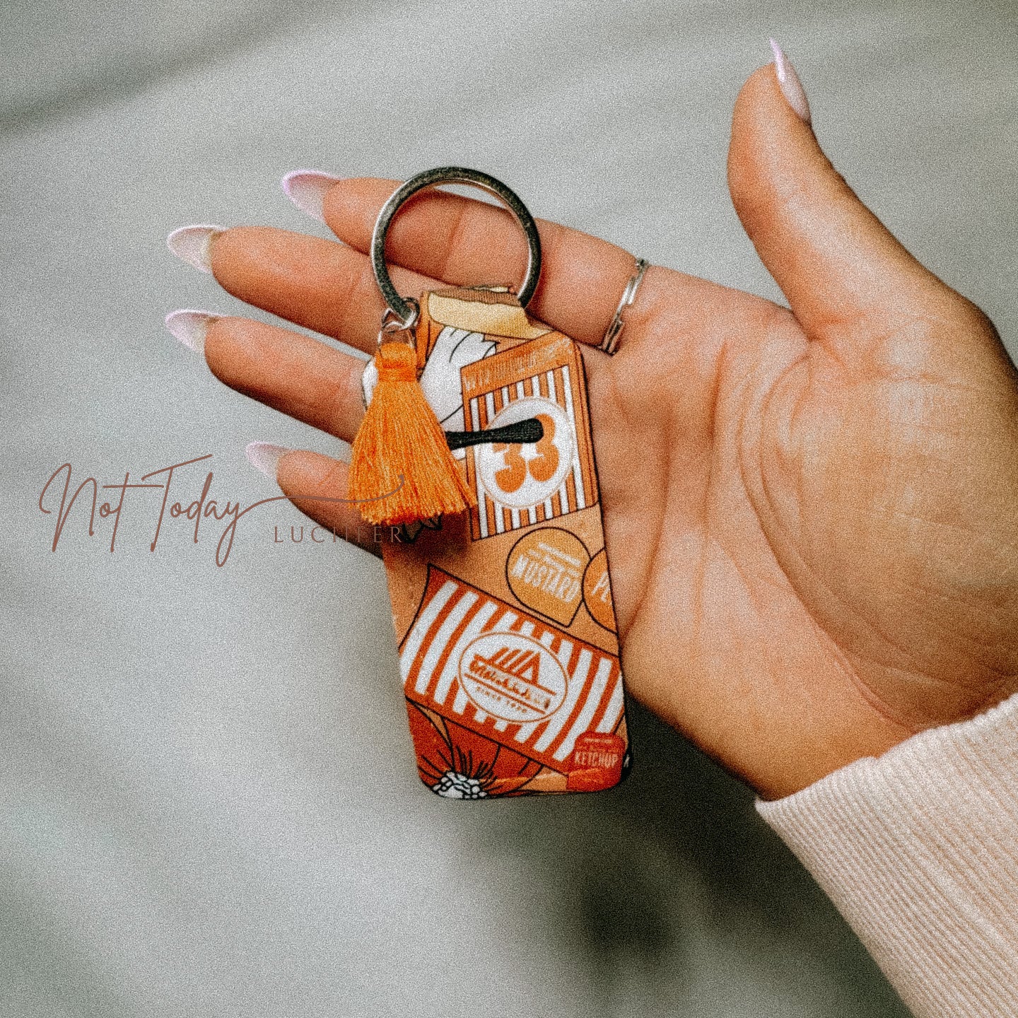 This cute Chapstick holder from NTL is the perfect accessory to keep your lips moisturized on-the-go! Never lose your Chapstick again with this handy holder that easily clips onto your bag, keys, or lanyard. Stay stylish and protected all day long with this must-have accessory.